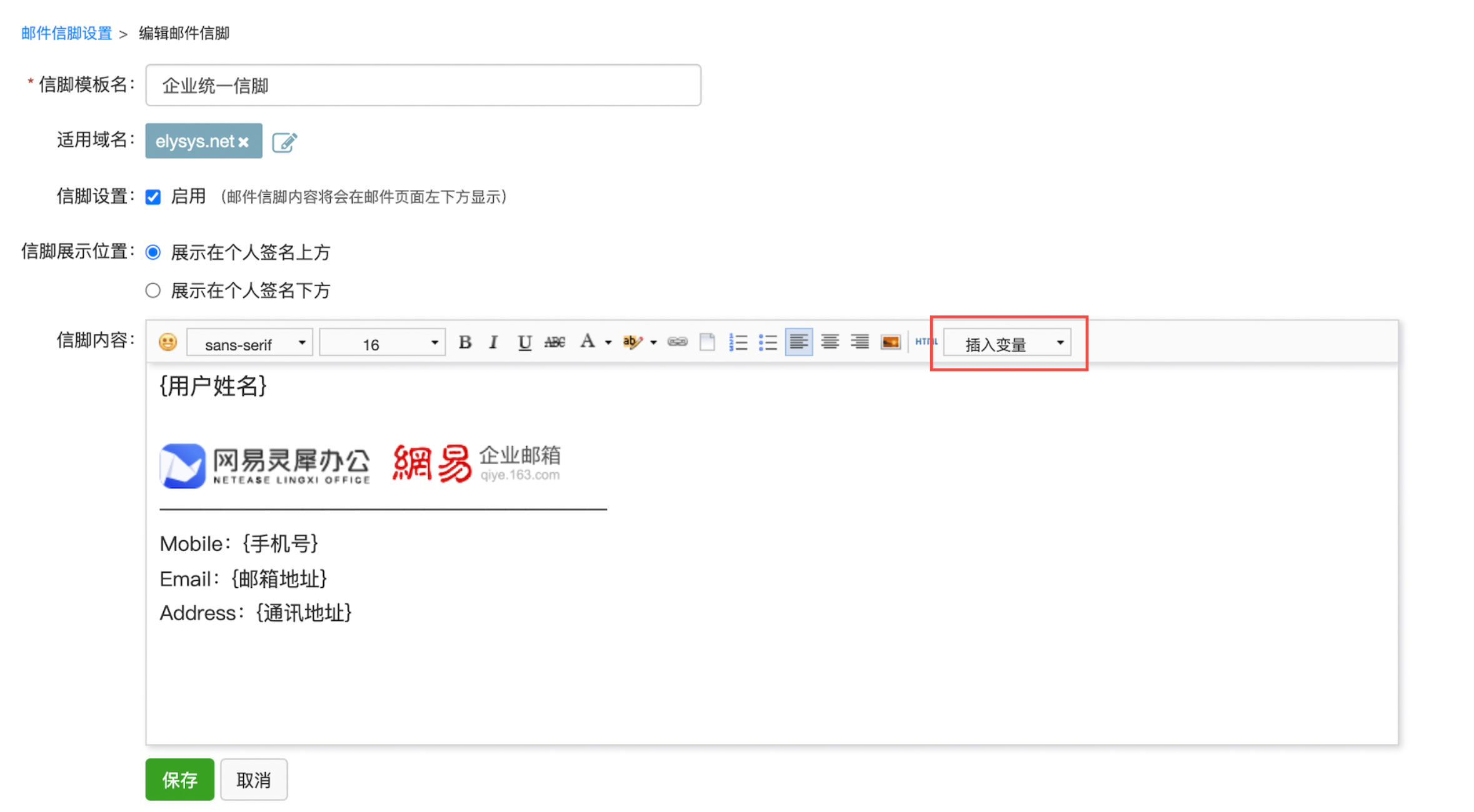 - 支持插入变量:手机号、邮箱地址、通讯地址等;