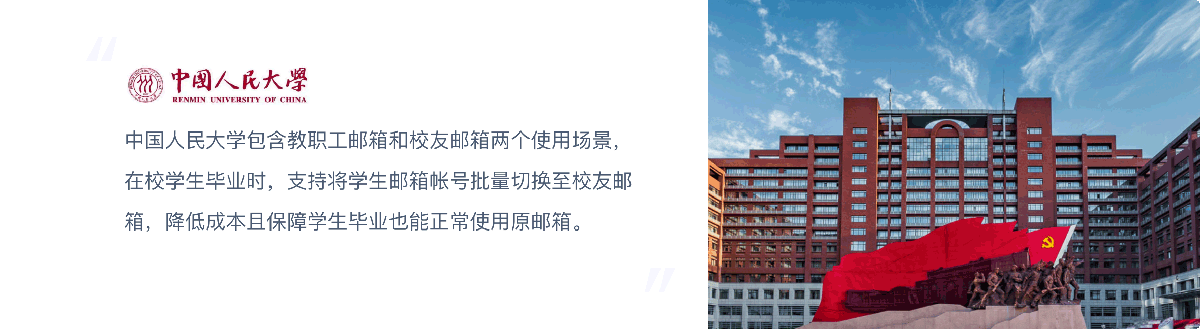 网易针对高校师生提供的一款专属邮件系统,支持教职工邮箱、学生邮箱以及校友邮箱,不同的用户群体,不同的邮箱功能权限,支持将已毕业的学生邮箱批量切换为校友邮箱,搭建学校与已毕业学生联系的纽带。