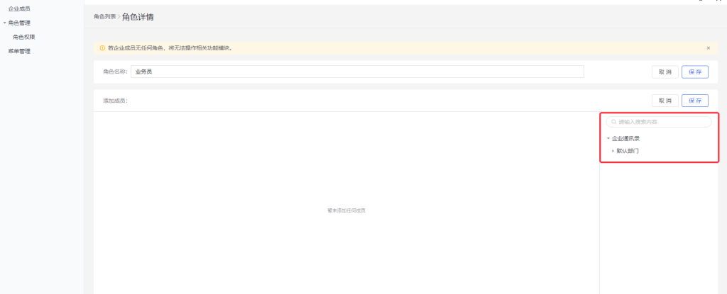 3.权限管理:想要给这些成员配置什么权限,点击勾选就行。没有勾选的,成员是没这个权限的。后期想要更改权限也可以直接在权限管理操作。