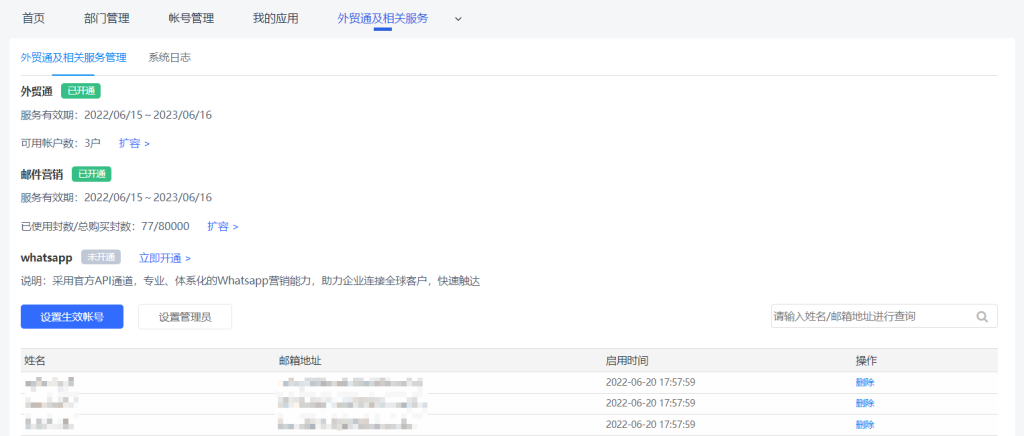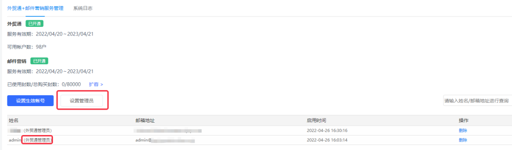 5.设置外贸通管理员,设置后可看到姓名后的(外贸通管理员)提示