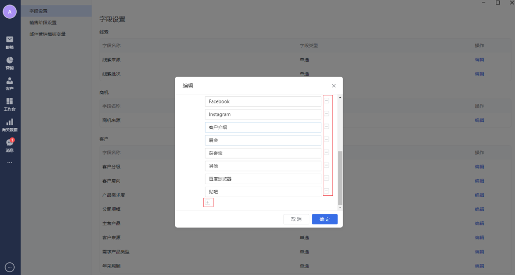 点击“编辑”,可以编辑具体字段的选项值,或删除/新增选项。