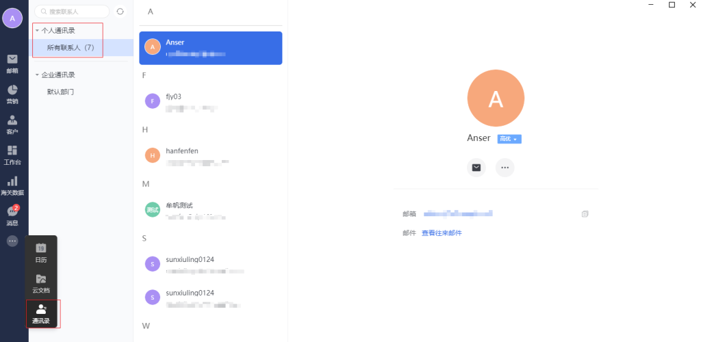 个人通讯录位置说明: