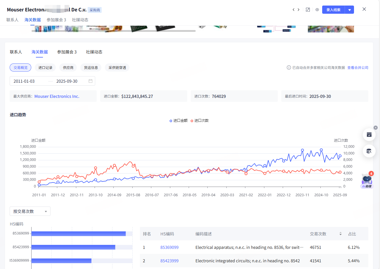 通过网易外贸通的海关数据可追溯历史采购记录,包括供应商信息、采购量级及价格区间,分析其采购实力、成本及节点,关注进口量下降/上升、新增HS编码等异动可间接判断其采购需求变化.