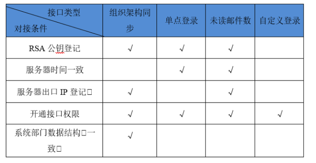 各类型接口对接条件对应如下: