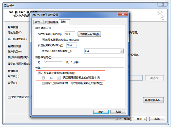 器上保留副本,或勾选多少天后删除,则可能会导致网页中邮件被删除,请谨慎设置。
