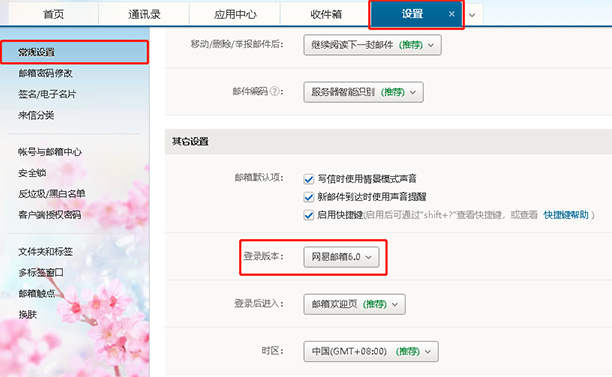 登录邮箱后点击“设置>常规设置”,在右侧展开设置功能列表中点击“登录版本”,选择您需使用的版本保存即可。